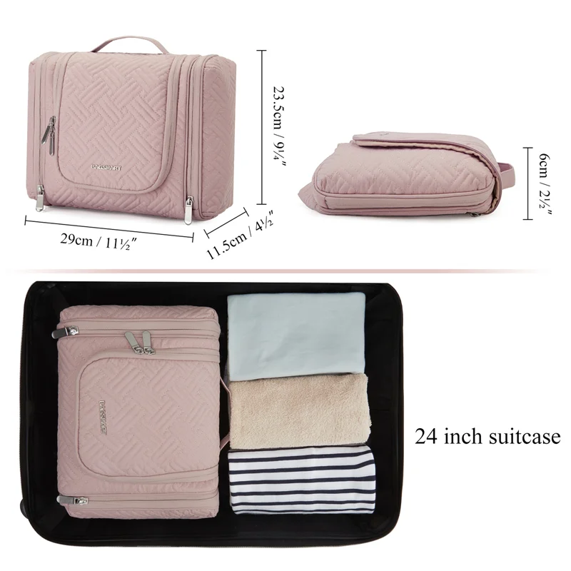 The BAGSMART Travel Toiletry Bag is more than just a cosmetic case—it’s a versatile range bag for women who demand elegance, organization, and practicality in every trip. Designed with a sleek, foldable profile, it slips effortlessly into luggage while offering ample space for skincare, cosmetics, and personal essentials. Every compartment is thoughtfully arranged to keep items secure and accessible, whether you’re heading to the office, the gym, a weekend getaway, or an outdoor adventure. Crafted from high-quality materials, it blends refined aesthetics with long-lasting durability.