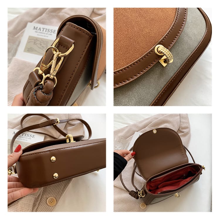 A chic retro small square bag with matte stitching and contrast color details. Crafted from PU leather with a secure lock closure and smart compartments, available in Black or Brown for timeless elegance.